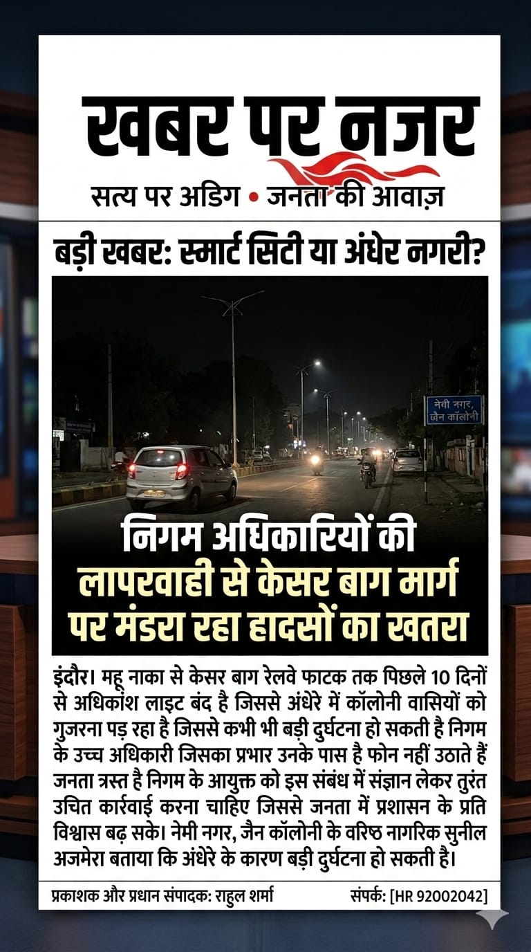 स्मार्ट सिटी या अंधेर नगरी? निगम अधिकारियों की लापरवाही से केसर बाग मार्ग पर मंडरा रहा हादसों का खतरा
